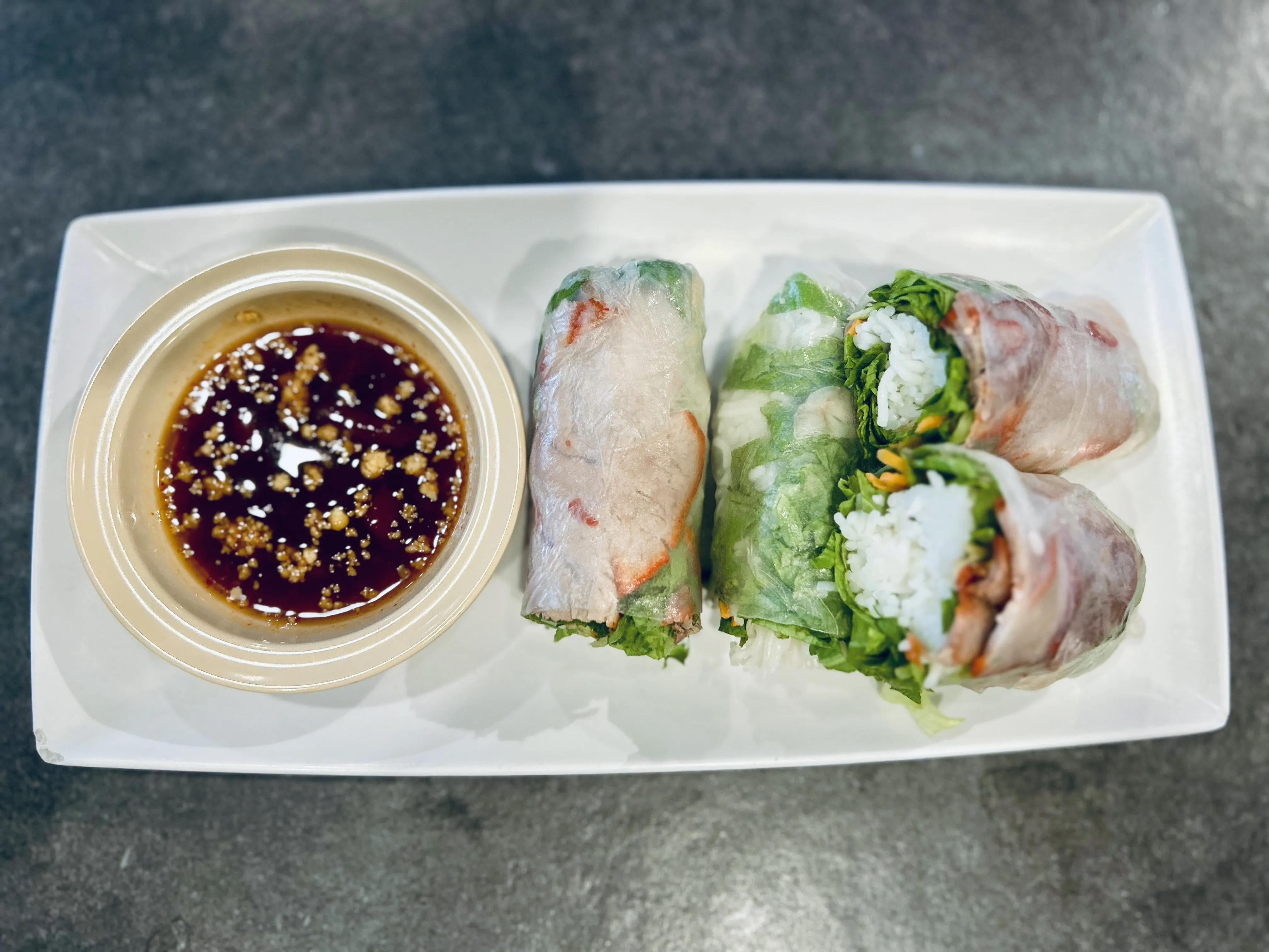Sliced Pork, Shrimp, Kowpoon Noodles & Fresh Veggies Wrapped In Rice Paper.(2 Pcs Per Order)