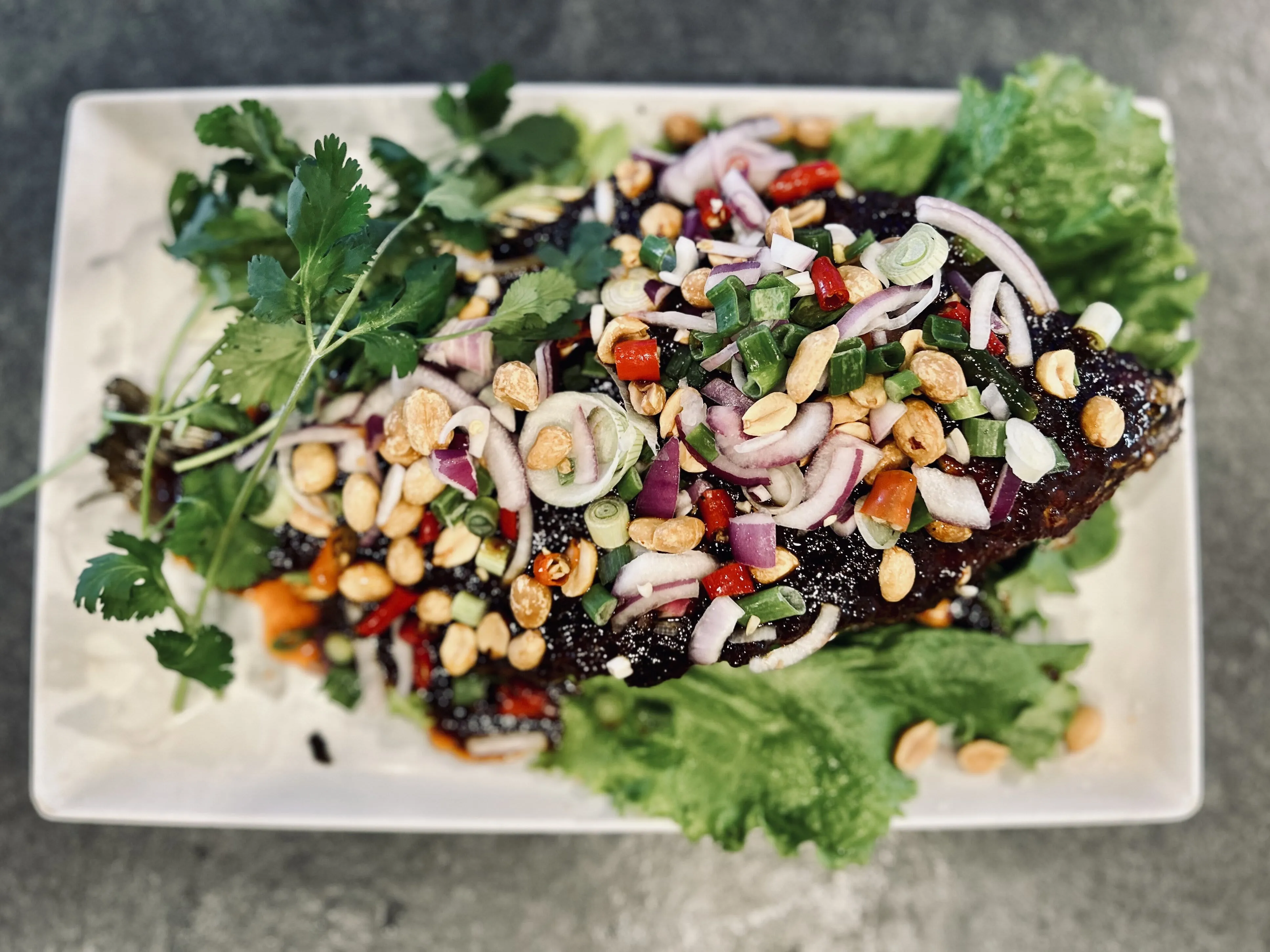 Deep Fried Tilapia With Sweet & Spicy Sauce.
