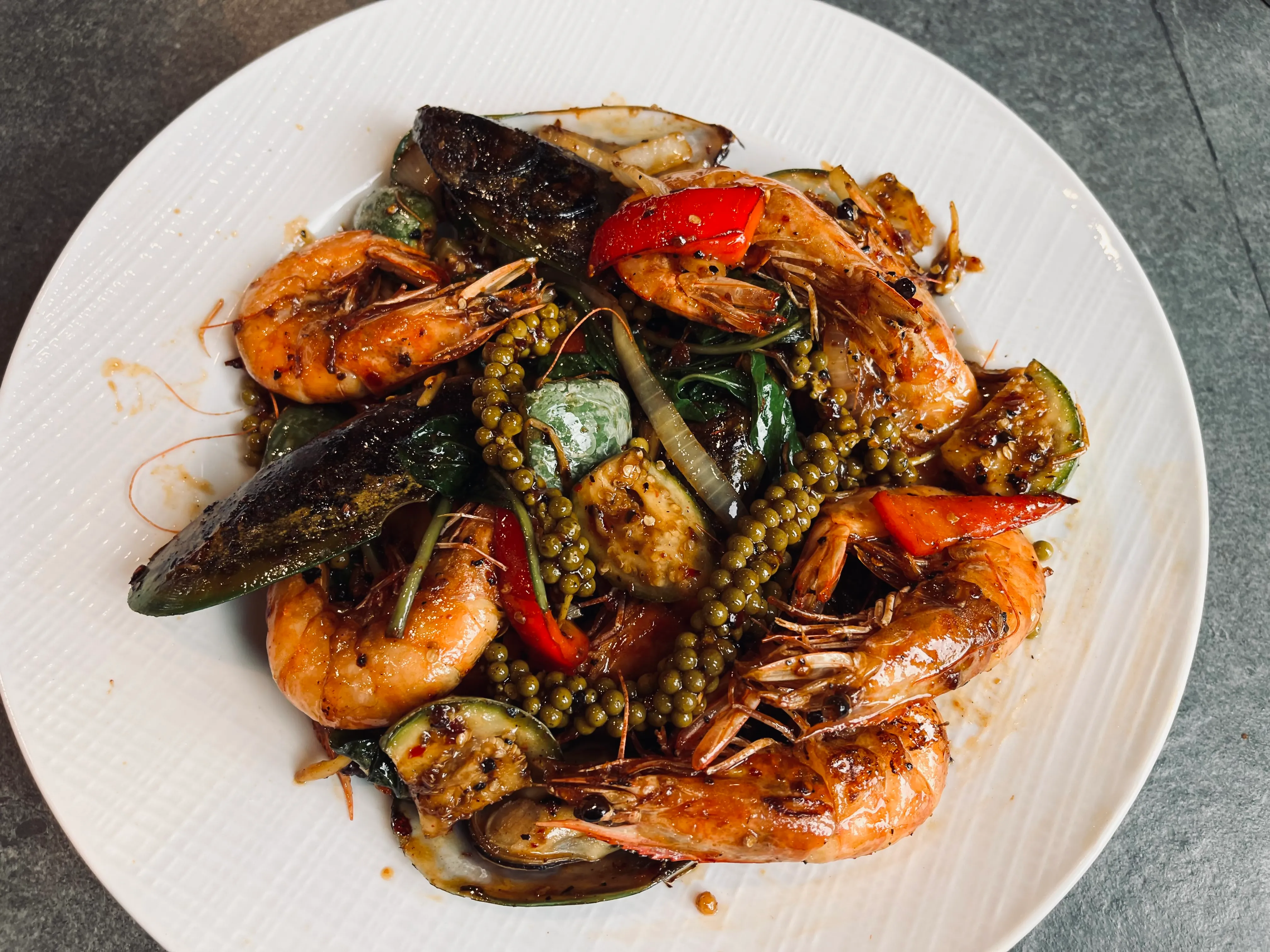 Spicy Stir Fried Kenchai, Galanga, Lemon Grass, Lemon Leaf & Young Peppercorn.